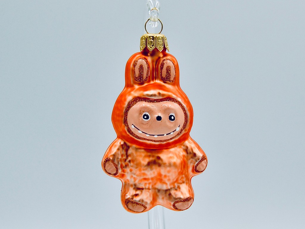 Vánoční ozdoba ve stylu Labubu. Ručně foukané sklo a malované.